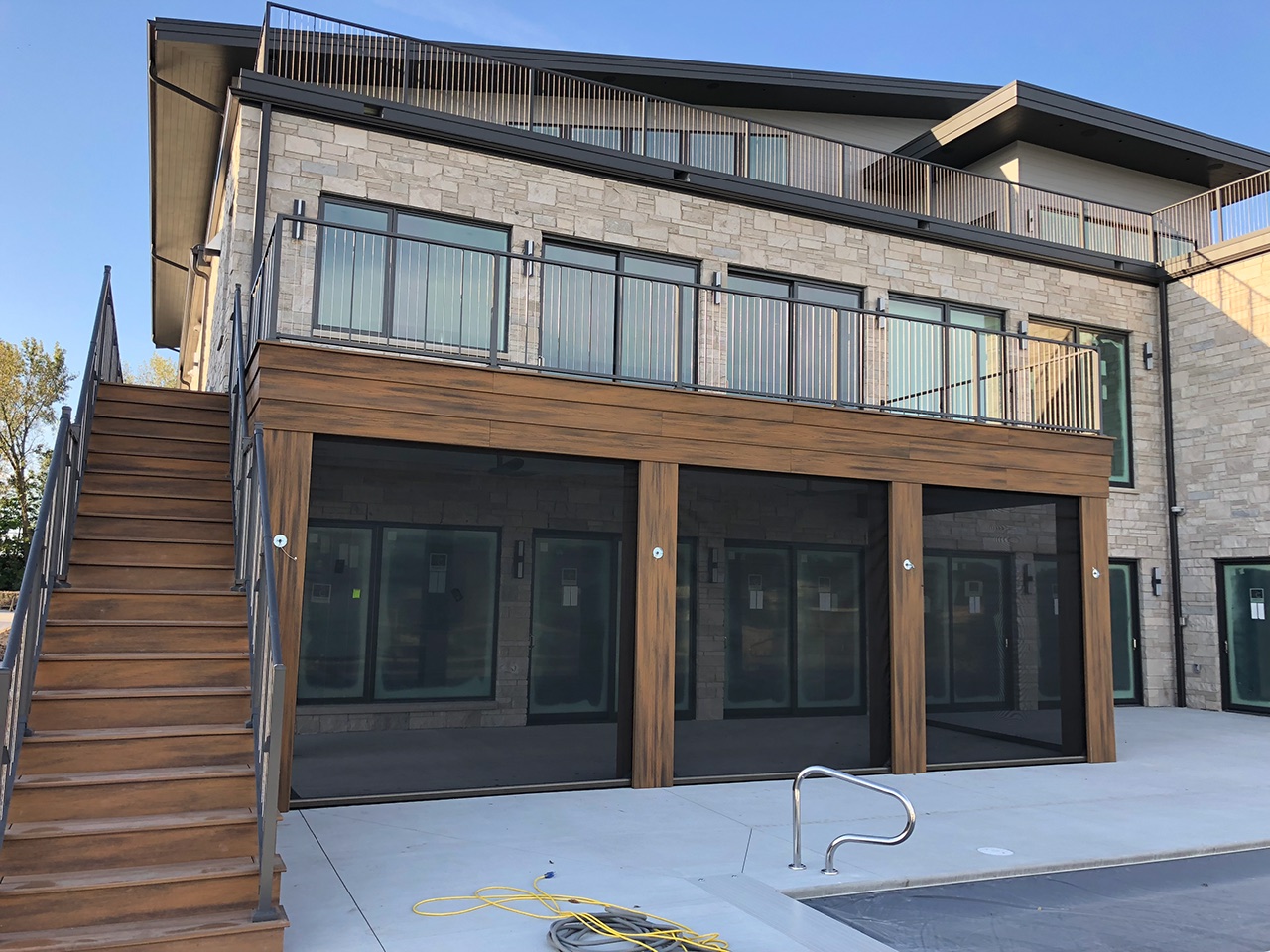 By using Trex RainEscape, Mitchell was able to deliver a completely finished and waterproofed lower-level living space designed for the ultimate in al fresco entertaining. Three garage-like openings built into the base of the deck are outfitted with retractable phantom screens that can be opened for outdoor access or closed to create a comfortable, multi-season room. The largest of the openings features a double track which houses a movie projection screen that instantly turns the space into a luxurious, outdoor home theater.